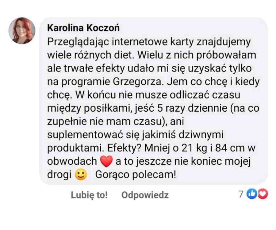 "Greg dzięki Tobie schudłem już 42kg, ale dobrze wiesz, że to jeszcze nie koniec."