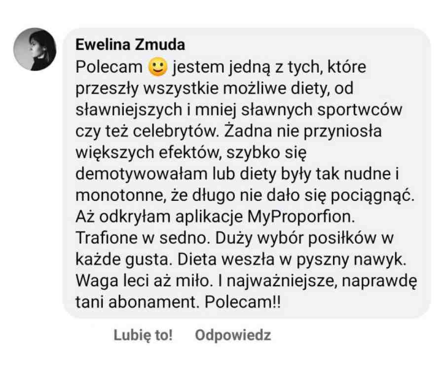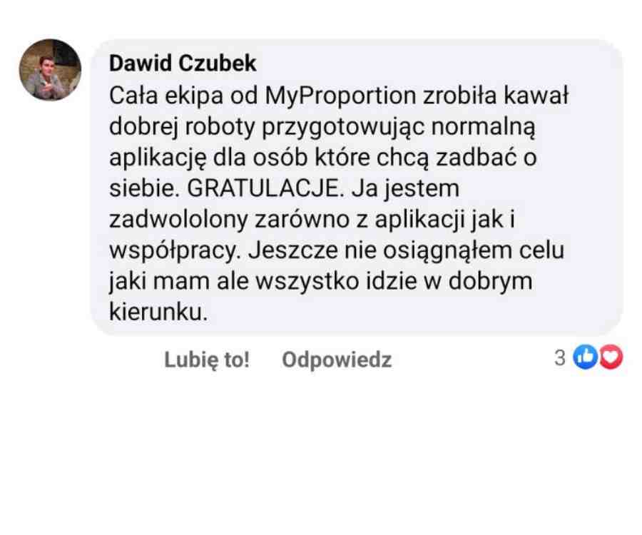 "Po wszystkich dietach cud trafiłem do MyProportion i bardziej zadowodolony nie będę."